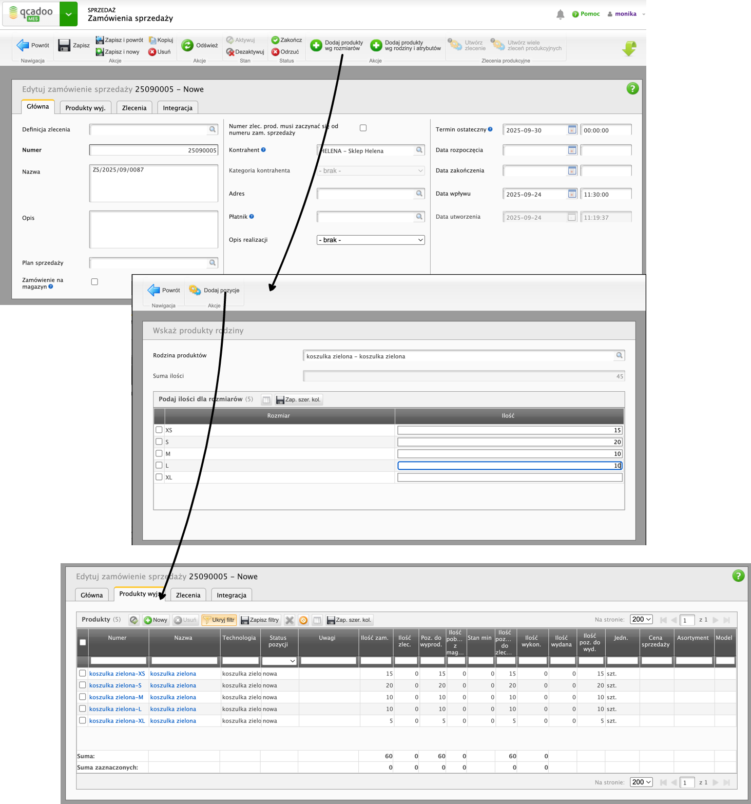 Przeszliśmy razem przez cały proces produkcyjny - od zamówienia po wyprodukowanie. Wsparcie dla produkcji rozmiarowej znajdziesz też w planie sprzedaży, w ręcznym tworzeniu grup zleceń, czy w prezentacji zapotrzebowania materiałowego.